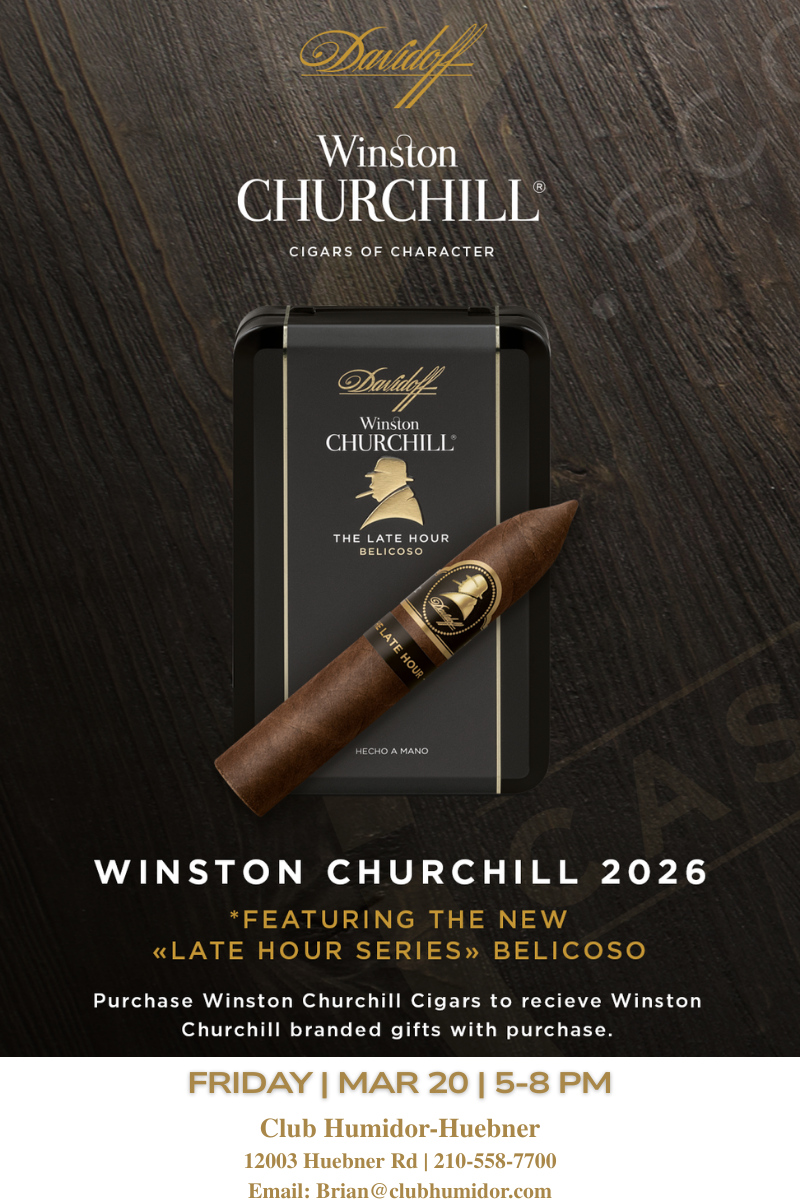 Join us at Club Humidor Huebner on Friday, March 20th from 5pm to 8pm and enjoy the rich selection of Winston Churchill cigars from Davidoff!