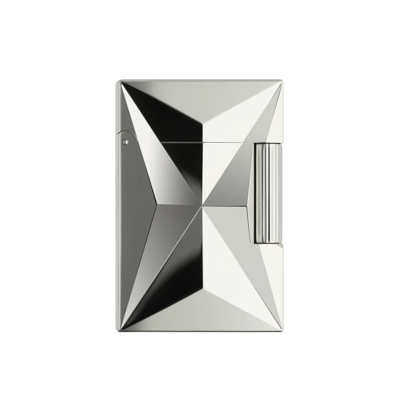Inspired by the X-Bag, one of the bags from the leather goods collection developed this season by S.T. Dupont, Fire X presents its reinterpretation of the iconic flame tip on the classics of the House. Line 2 Fire X small model lighter in 3D with a palladium finish body, as well as the back engraved with the Fire X motif. Featuring a double yellow flame.